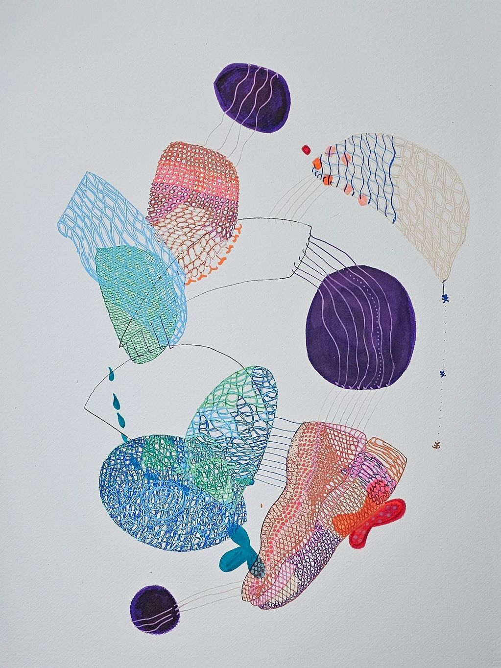 hot, impasto and colorful. Sonia Roseval’s freehand dance on paper is hibernal, ascetic, and